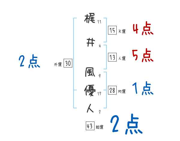 梶井風優人さんの画数の鑑定結果