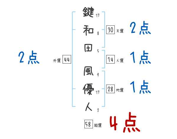 鍵和田風優人さんの画数の鑑定結果