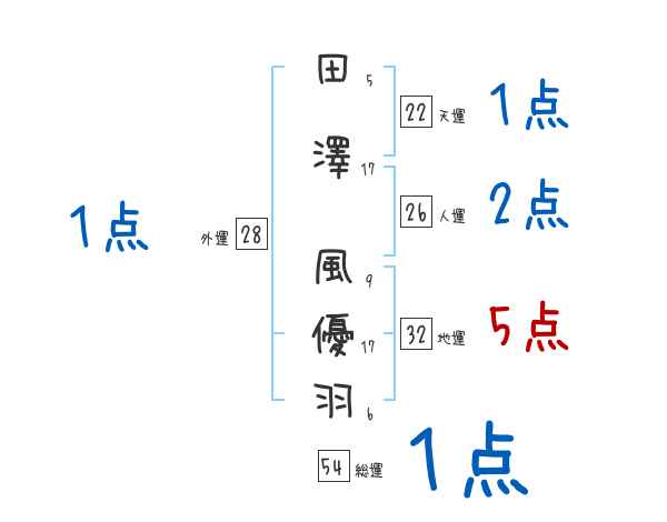 田澤風優羽さんの画数の鑑定結果