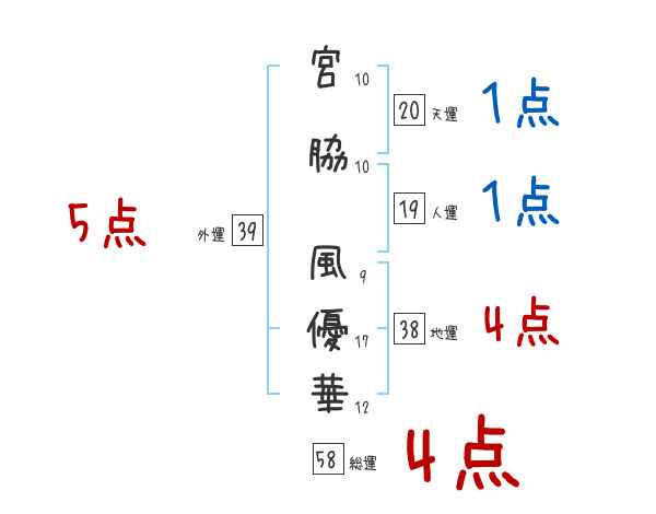 宮脇風優華さんの画数の鑑定結果