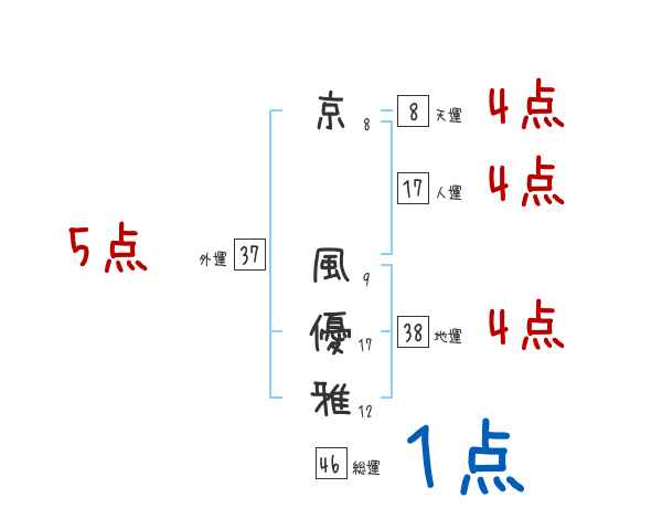 京風優雅さんの画数の鑑定結果