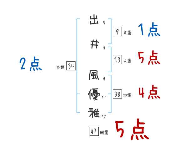 総運![]() | 出井風優雅さんの総運は47画の5つ星!実力が開花し発展する円満な人生。財に恵まれる。 あなたの人生を表す1番重要な運勢です。生涯を通じて影響する総合運となり、主に50歳以降の晩年期に影響を及ぼします。 |