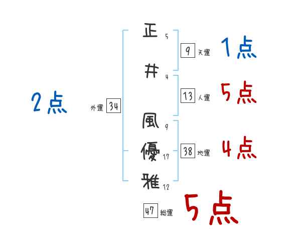 天運![]() | 正井風優雅さんの天運は9画の1つ星!消極的で才能を発揮することが苦手なことも。周りの意見に耳を傾けましょう。 家系が持つ宿命的な運勢を表します。祖先から受け継いだ苗字ですので自分の力が及びません。家柄を象徴します。 |
