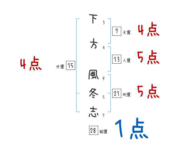 下方風冬志さんの画数の鑑定結果