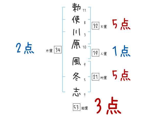 勅使川原風冬志さんの画数の鑑定結果