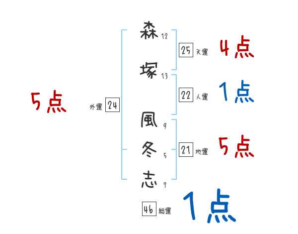 森塚風冬志さんの画数の鑑定結果