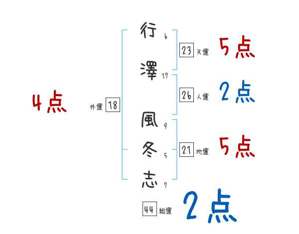 行澤風冬志さんの画数の鑑定結果