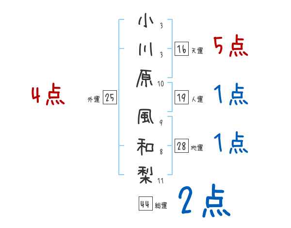 小川原風和梨さんの画数の鑑定結果