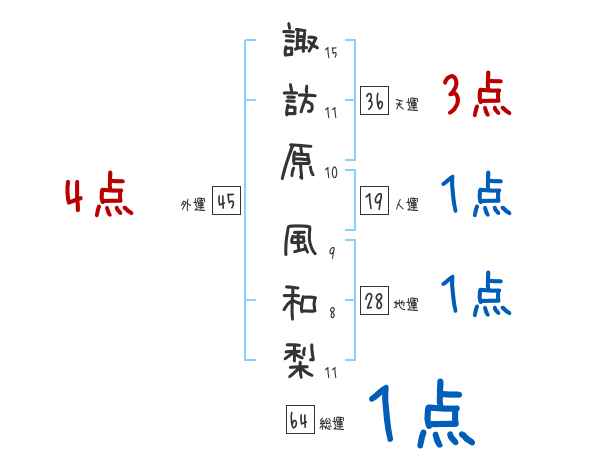 諏訪原風和梨さんの画数の鑑定結果