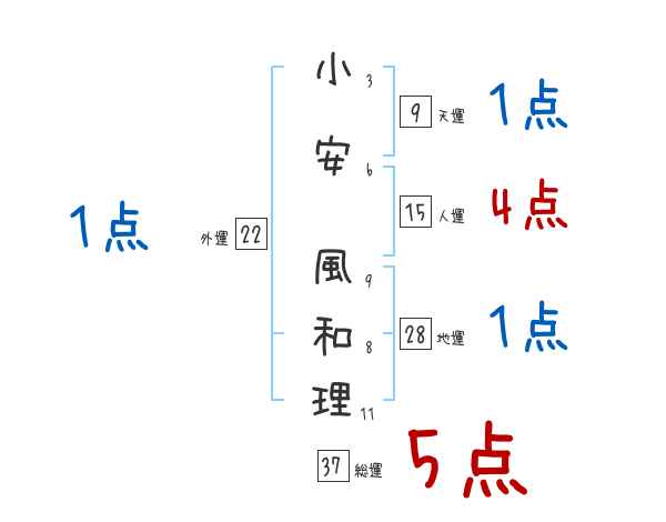 外運![]() | 小安風和理さんの外運は22画の1つ星!努力することが苦手ないっぽう手先が器用。芸術性にも優れる。 生活面を象徴する運勢です。外部から受ける影響力を表し、結婚運、家庭運や職場、環境への順応性を表します。 |