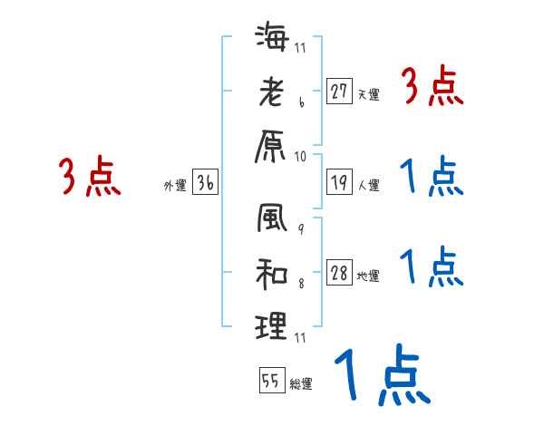 海老原風和理さんの画数の鑑定結果
