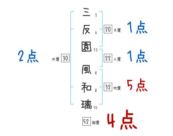 地運![]() | 三反園風和璃さんの地運は32画の5つ星!柔軟性があり成功する。チャンスが多く金運が良い。 個性を表す基礎的な運勢です。性格形成や対人関係、行動力など家庭環境に影響されます。主に誕生してから20歳くらいまでの若年期の運勢を表します。 |