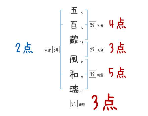 五百蔵風和璃さんの画数の鑑定結果