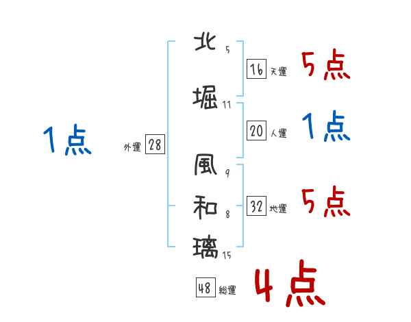 外運![]() | 北堀風和璃さんの外運は28画の1つ星!家庭環境に注意。スポーツで活躍できる能力があるかも。 生活面を象徴する運勢です。外部から受ける影響力を表し、結婚運、家庭運や職場、環境への順応性を表します。 |