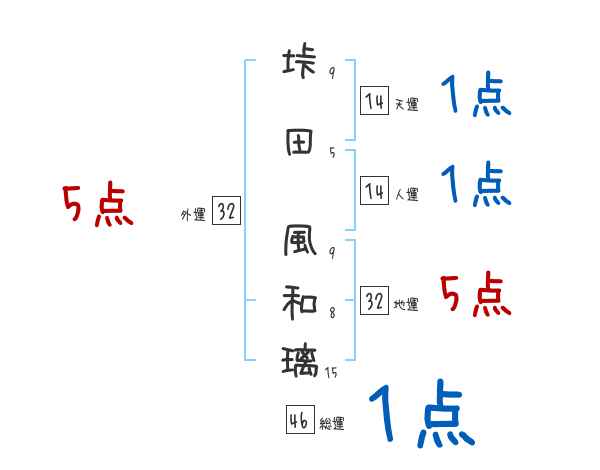 天運![]() | 垰田風和璃さんの天運は14画の1つ星!人に対して優しいがストレスを溜め込みがち。人間関係のトラブルを避けるよう気をつけましょう。 家系が持つ宿命的な運勢を表します。祖先から受け継いだ苗字ですので自分の力が及びません。家柄を象徴します。 |