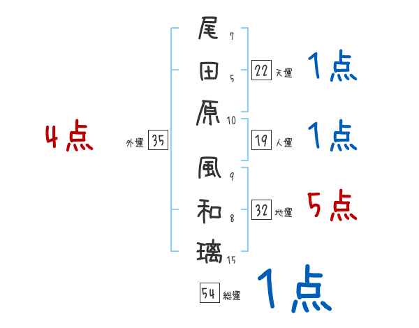 尾田原風和璃さんの画数の鑑定結果