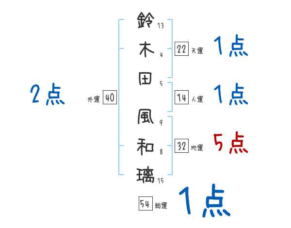 鈴木田風和璃さんの画数の鑑定結果