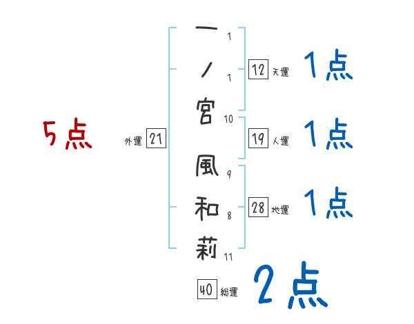 総運![]() | 一ノ宮風和莉さんの総運は40画の2つ星!自信過剰で物事に固執するためトラブルに注意。 あなたの人生を表す1番重要な運勢です。生涯を通じて影響する総合運となり、主に50歳以降の晩年期に影響を及ぼします。 |