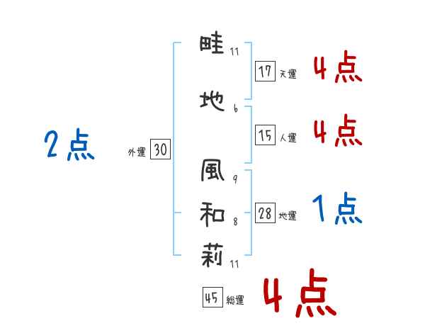 外運![]() | 畦地風和莉さんの外運は30画の2つ星!浮き沈みの激しさに注意しましょう。 生活面を象徴する運勢です。外部から受ける影響力を表し、結婚運、家庭運や職場、環境への順応性を表します。 |
