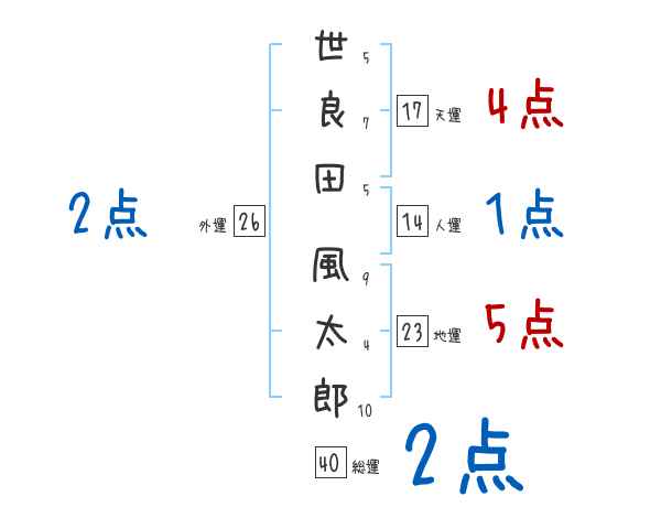 天運![]() | 世良田風太郎さんの天運は17画の4つ星!積極的な行動力。地位を気づき財産を手に入れる。純粋な心と直感力。 家系が持つ宿命的な運勢を表します。祖先から受け継いだ苗字ですので自分の力が及びません。家柄を象徴します。 |