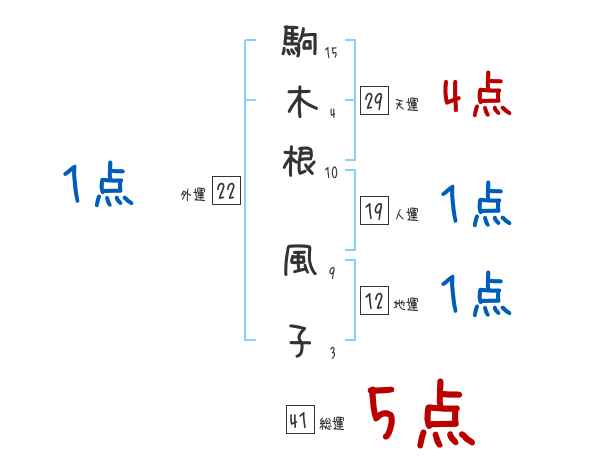 外運![]() | 駒木根風子さんの外運は22画の1つ星!努力することが苦手ないっぽう手先が器用。芸術性にも優れる。 生活面を象徴する運勢です。外部から受ける影響力を表し、結婚運、家庭運や職場、環境への順応性を表します。 |