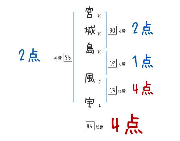 宮城島風宇さんの画数の鑑定結果