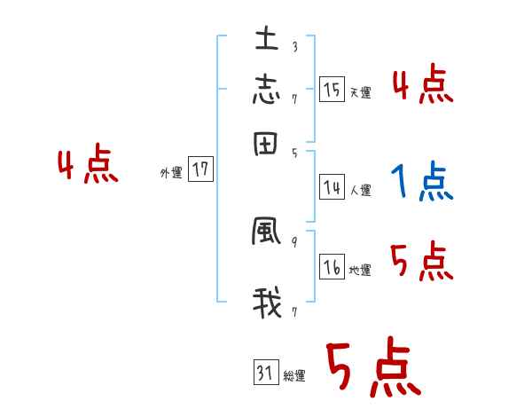 土志田風我さんの画数の鑑定結果