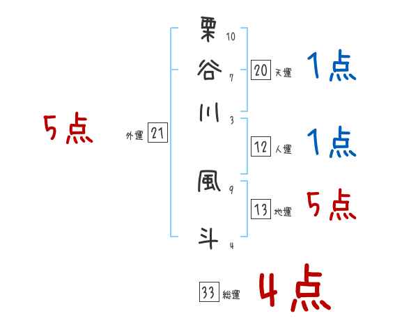 栗谷川風斗さんの画数の鑑定結果