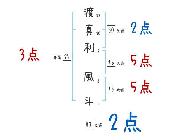 渡真利風斗さんの画数の鑑定結果