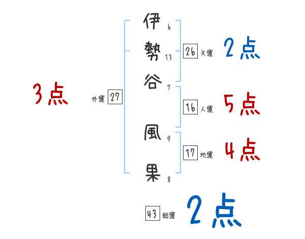 伊勢谷風果さんの画数の鑑定結果