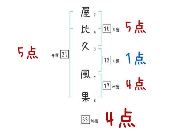 外運![]() | 屋比久風果さんの外運は21画の5つ星!統率力がある。独立し成功する。名誉を手に入れる。 生活面を象徴する運勢です。外部から受ける影響力を表し、結婚運、家庭運や職場、環境への順応性を表します。 |