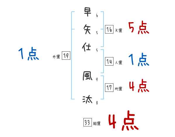 早矢仕風汰さんの画数の鑑定結果