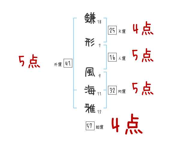 鎌形風海雅さんの画数の鑑定結果