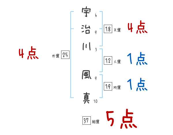 宇治川風真さんの画数の鑑定結果
