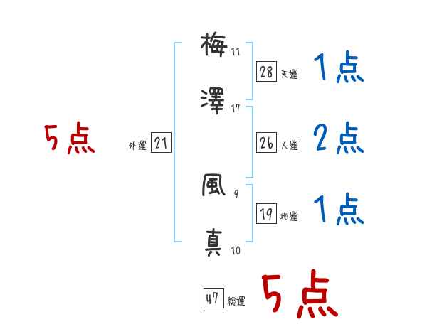 梅澤風真さんの画数の鑑定結果