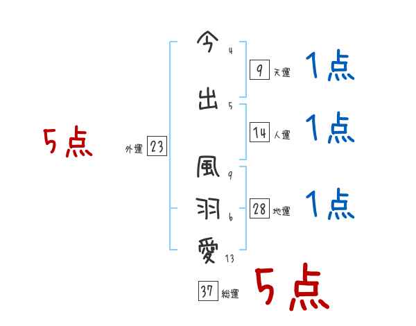 今出風羽愛さんの画数の鑑定結果