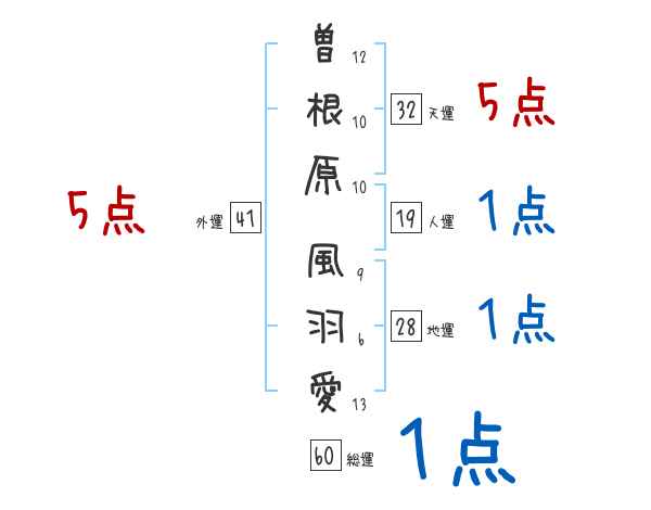 曽根原風羽愛さんの画数の鑑定結果