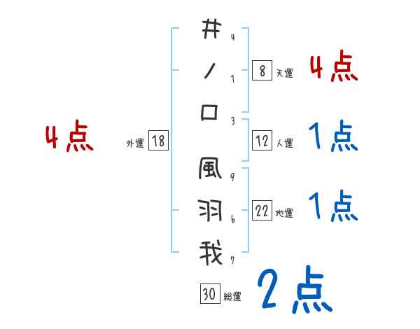 外運![]() | 井ノ口風羽我さんの外運は18画の4つ星!情熱的で剛気。忍耐力があり信頼される。 生活面を象徴する運勢です。外部から受ける影響力を表し、結婚運、家庭運や職場、環境への順応性を表します。 |