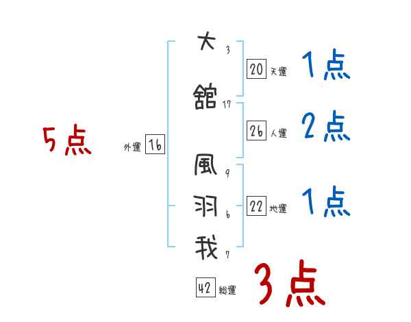 大舘風羽我さんの画数の鑑定結果