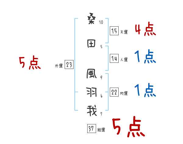 天運![]() | 桑田風羽我さんの天運は15画の4つ星!人徳があり出世する。順調に物事を進め円満な人生。 家系が持つ宿命的な運勢を表します。祖先から受け継いだ苗字ですので自分の力が及びません。家柄を象徴します。 |