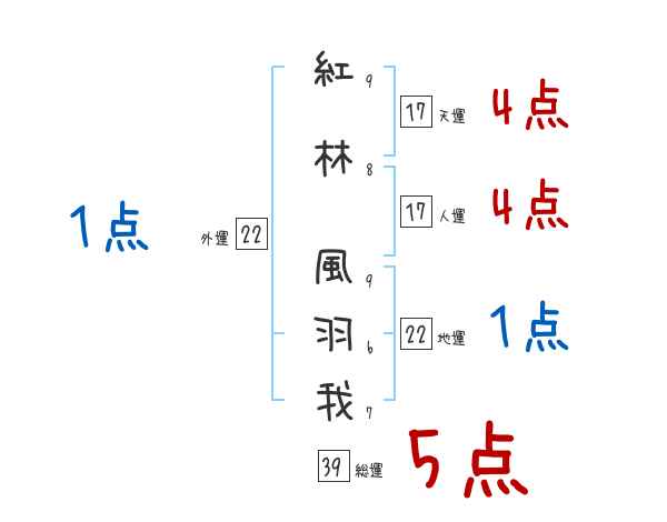 紅林風羽我さんの画数の鑑定結果
