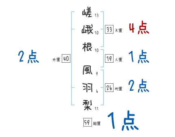 嵯峨根風羽梨さんの画数の鑑定結果