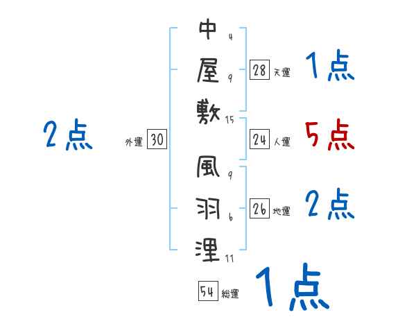 中屋敷風羽浬さんの画数の鑑定結果