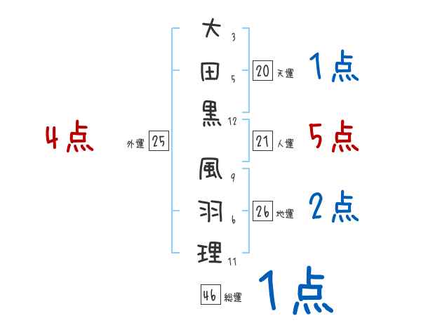天運![]() | 大田黒風羽理さんの天運は20画の1つ星!社交が苦手。人とは違った才能があり波乱万丈な人生かも。 家系が持つ宿命的な運勢を表します。祖先から受け継いだ苗字ですので自分の力が及びません。家柄を象徴します。 |