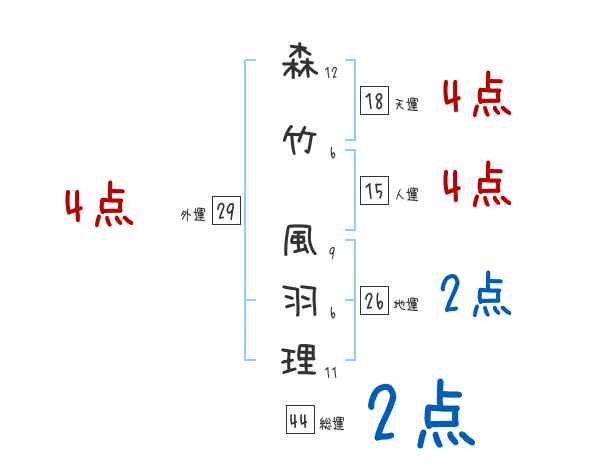 森竹風羽理さんの画数の鑑定結果