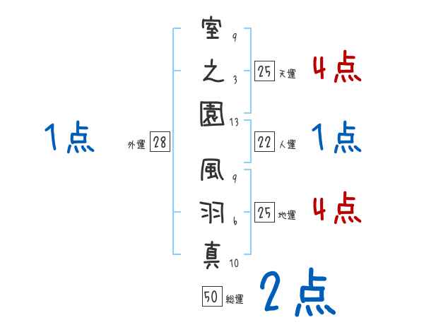室之園風羽真さんの画数の鑑定結果