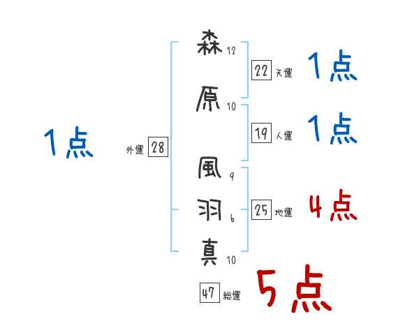 総運![]() | 森原風羽真さんの総運は47画の5つ星!実力が開花し発展する円満な人生。財に恵まれる。 あなたの人生を表す1番重要な運勢です。生涯を通じて影響する総合運となり、主に50歳以降の晩年期に影響を及ぼします。 |