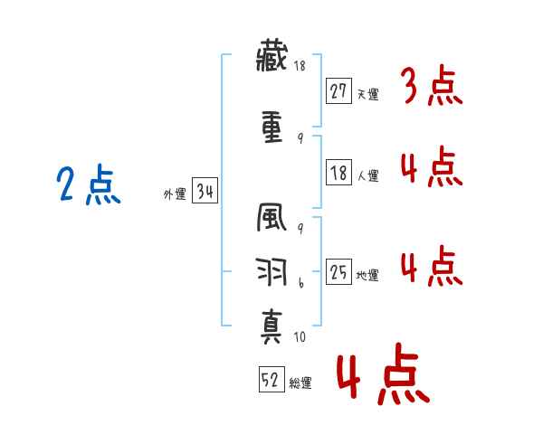 外運![]() | 藏重風羽真さんの外運は34画の2つ星!独創性に優れるが、自尊心が強く災難に注意しましょう。 生活面を象徴する運勢です。外部から受ける影響力を表し、結婚運、家庭運や職場、環境への順応性を表します。 |