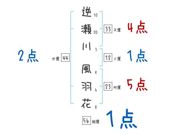 逆瀬川風羽花さんの画数の鑑定結果