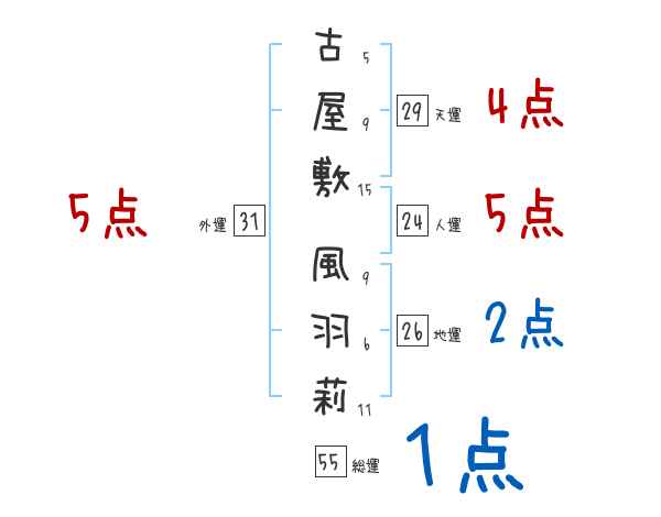 古屋敷風羽莉さんの画数の鑑定結果
